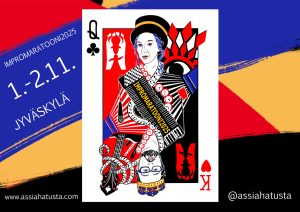 Impromaratooni2025 -festivaalit 1.-2.11.2025 Esiintyjinä on ammattilaisista ja kokeneista harrastajista koostuvia ryhmiä eri puolilta Suomea: improteatteria, nykytanssia, musiikkia, freestyleräppiä, lavarunoutta, nukketeatteria, kuvataidetta. Ässiä Hatusta loihtii festareille…